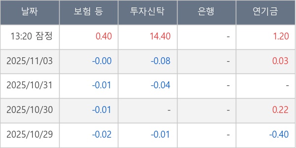 ※ 장중 매매동향은 잠정치이므로 실제 매매동향과 차이가 발생할수 있음
