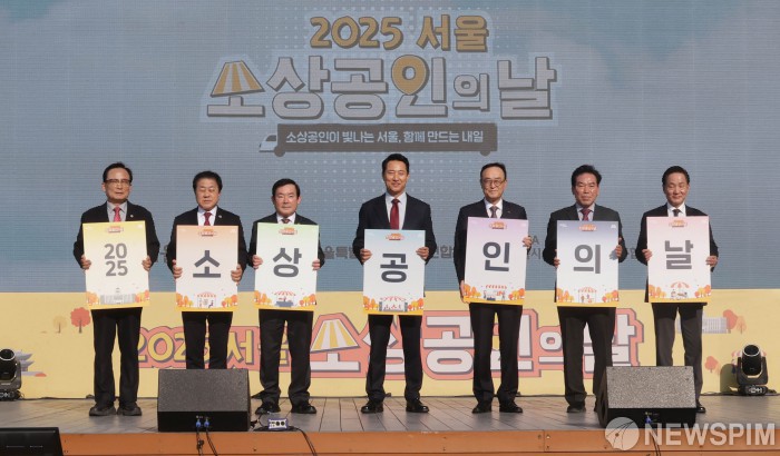 [서울=뉴스핌] 양윤모 기자 = 오세훈 서울시장이 5일 오후 서울광장에서 개최된 '2025 서울시 소상공인의 날' 기념행사에 참석해 기념촬영을 하고 있다. 이번 행사는 소상공인의 열정과 노력을 시민과 함께 기리고 응원하기 위해 서울특별가 주최하고 소상공인연합회 등 관련 단체 공동 주관으로 개최됐다. 2025.11.05 yym58@newspim.com
