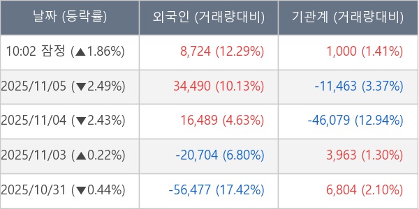 ※ 사모펀드 등 일부 기관의 순매매량은 표시되지 않음
