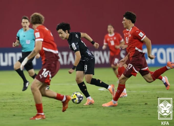 한국은 8일(한국시간) 카타르 도하 어스파이어 존에서 열린 2025 국제축구연맹(FIFA) U-17 월드컵 F조 2차전에서 스위스와 0-0으로 비겼다. 앞서 멕시코를 2-1로 꺾은 한국은 1승 1무(승점 4점)를 기록, 스위스(승점 4점)에 골득실에서 밀리며 조 2위를 유지했다. 멕시코가 승점 3점으로 3위, 코트디부아르는 승점 없이 최하위다.