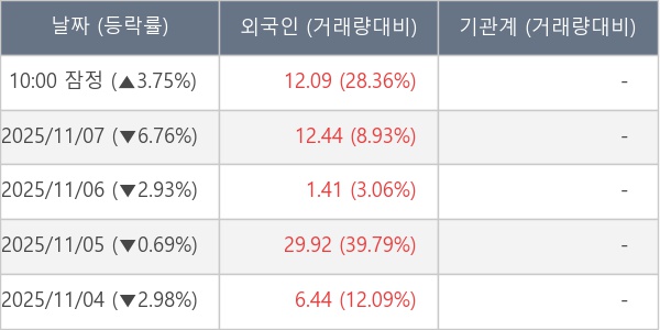 [표] 외국인ㆍ기관 순매매량 (단위 만주)
