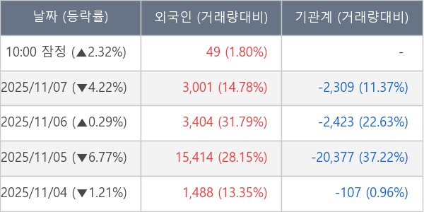 [표] 외국인ㆍ기관 순매매량 (단위 주)