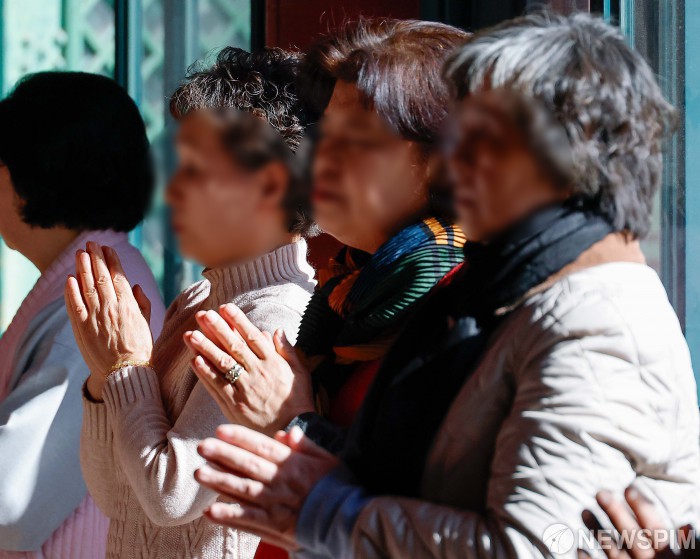[서울=뉴스핌] 류기찬 기자 = 2026학년도 대학수학능력시험을 사흘 앞둔 10일 오후 서울 종로구 조계사를 찾은 불자들이 수험생의 고득점을 기원하는 기도를 하고 있다. 2025.11.10 ryuchan0925@newspim.com