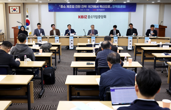 [서울=뉴스핌] 정태이 인턴기자 = 중소기업중앙회는 여의도 중기중앙회에서 '중소 제조업 전환 전략: 위기에서 혁신으로' 정책 토론회를 개최했다고 11일 밝혔다.