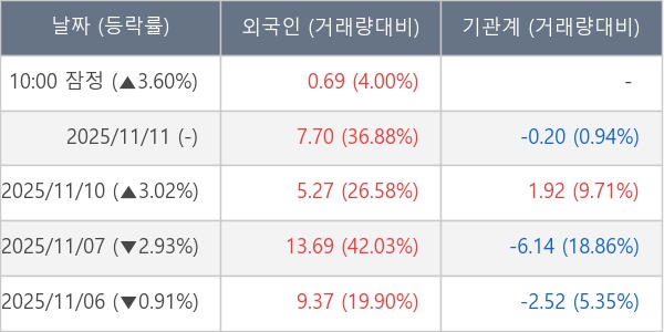 [표] 외국인ㆍ기관 순매매량 (단위 만주)