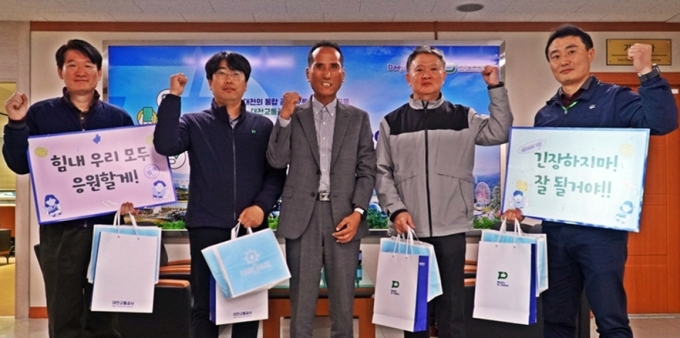 [대전=뉴스핌] 오영균 기자 = 대전교통공사는 11일 2026학년도 수학능력시험 수험생 자녀를 둔 직원들에게 격려품을 지급하고 응원했다. 유운호 경영이사는 "직원 한 사람 한 사람의 가족이 곧 공사의 가족이라는 마음으로, 앞으로도 따뜻한 직장 문화를 만들어가겠다"며 "우리 공사는 시민과 함께 성장하고, 직원과 함께 행복한 교통공사를 만들어가겠다"고 강조했다. [사진=대전교통공사] gyun507@newspim.com