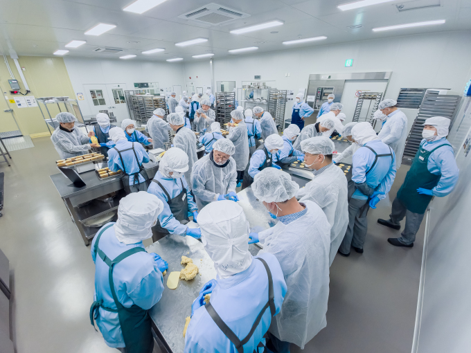 | 전영현 대표이사 등 삼성전자 DS부문 경영진들이 지난 10일 경기 용인시 장애인표준사업장 '희망별숲'을 찾아 쿠키 만들기 봉사에 참여했다. [사진=삼성전자] |