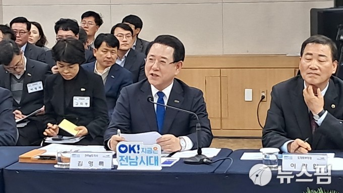 전남도는 13일 여수시청 대회의실에서 김영록 도지사를 비롯해 정기명 여수시장, 지역 도·시의원, 청년, 비전산업 관계자 등 120여 명이 참석해 '여수시 정책비전 투어'를 열고 산업구조 대전환과 해양관광 중심 도시 도약을 목표로 하는 12대 미래혁신 전략을 발표했다.