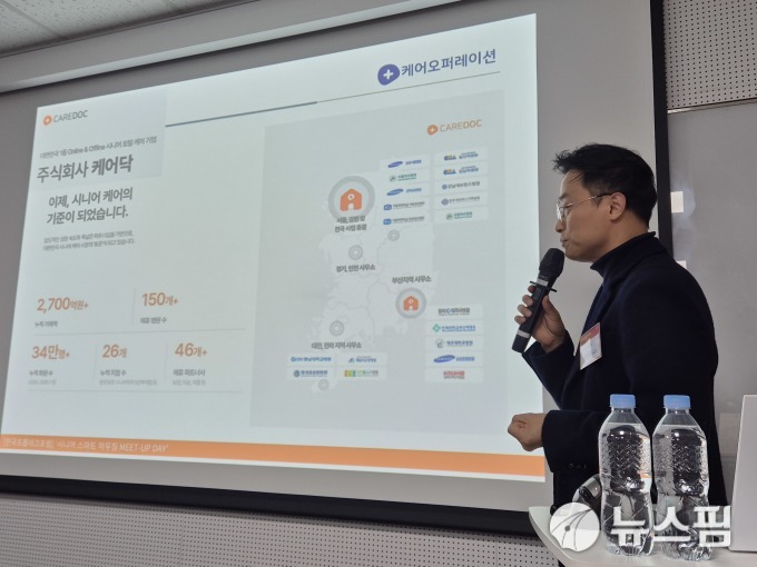 | 이선열 케어닥 부대표가 13일 '제20회 시니어 스마트 하우징 밋업데이'에서 '케어서비스 기반 시니어 하우징 사업'을 주제로 발표를 진행하고 있다. [사진=정영희 기자] |