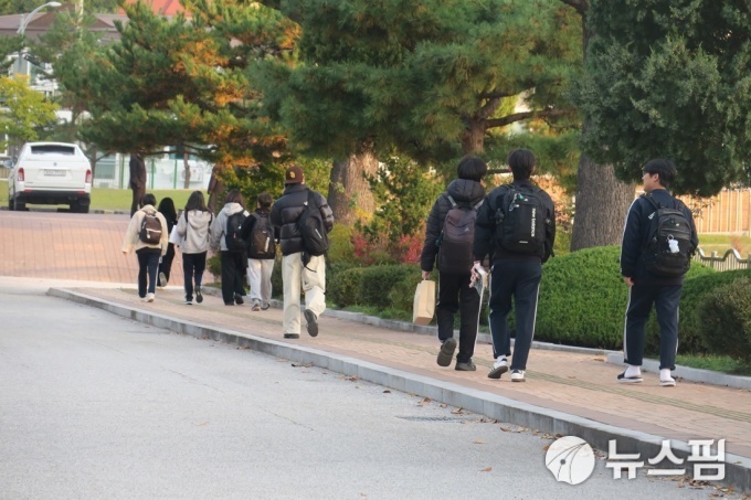 | [울진=뉴스핌] 남효선 기자 = 대학수학능력시험(대입수능)일인 13일, 경북 동해안권의 아침 기온이 5~8도의 분포를 보이며 비교적 포근한 가운데 울진 지역 수험생들이 울진고등학교에 마련된 수능 고사장으로 들어가고 있다. 2025.11.13 nulcheon@newspim.com |