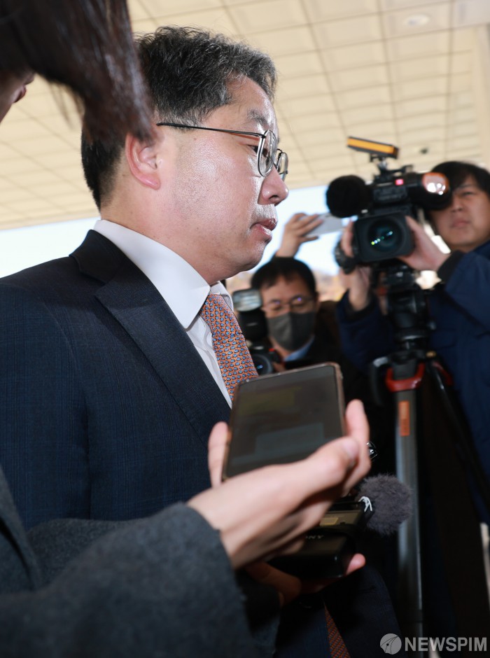 [서울=뉴스핌] 김지나 박민경 기자 = 대장동 사건 항소 포기 논란으로 사의를 표명한 노만석 검찰총장 대행(사법연수원 29기·대검찰청 차장검사)이 14일 퇴임식을 앞두고 출근했다. 퇴임 소감을 묻는 기자의 질문엔 별다른 입장을 밝히지 않았다.