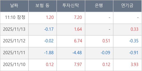 ※ 사모펀드 등 일부 기관의 순매매량은 표시되지 않음