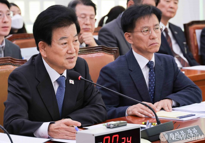 [서울=뉴스핌] 윤창빈 기자 = 정동영 통일부 장관이 14일 서울 여의도 국회에서 열린 외교통일위원회 전체회의에서 의원 질문에 답변하고 있다. 2025.11.14 pangbin@newspim.com