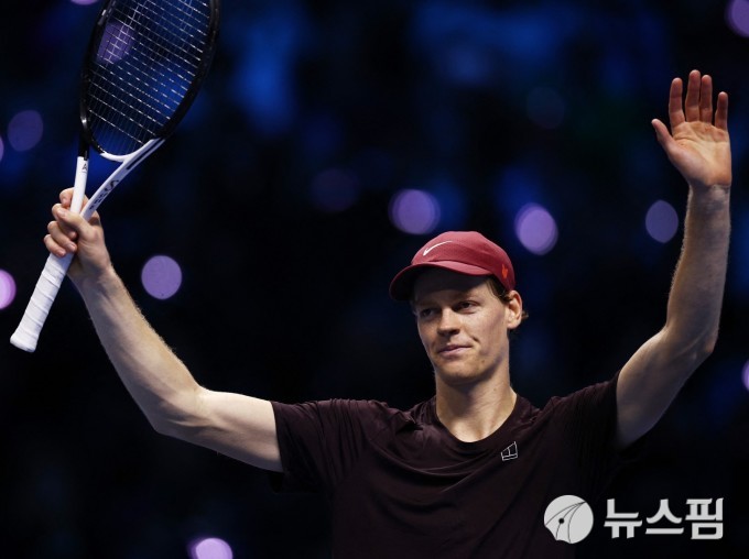 | [토론토 로이터=뉴스핌] 박상욱 기자=신네르가 15일(현지시간) ATP 파이널스 단식 4강전에서 을 꺾고 환호하는 관중에게 답하고 있다. 2025.11.15 psoq1337@newspim.com |