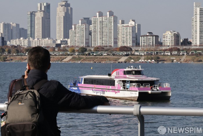 [서울=뉴스핌] 양윤모 기자 = 16일 한강버스가 서울 송파구 잠실선착장 부근 강바닥에 걸려 멈춰있다. 김민석 국무총리는 서울 한강버스가 강바닥에 걸려 멈춘 사고와 관련해 한강버스 운항 안전 체계를 재점검하라고 지시했다. 2025.11.16 yym58@newspim.com