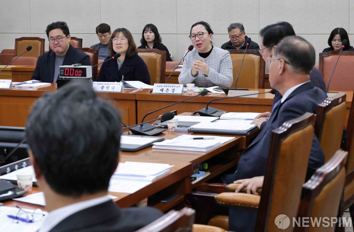 [서울=뉴스핌] 윤창빈 기자 = 배은경 호남대학교 사회복지학과 교수가 17일 서울 여의도 국회 보건복지위원회 전체회의에서 열린 경계선지능인 지원 관련 법안에 대한 공청회에서 답변하고 있다. 2025.11.17 pangbin@newspim.com
