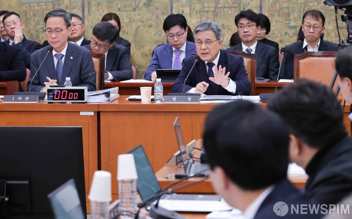 [서울=뉴스핌] 윤창빈 기자 = 허민 국가유산청장이 17일 서울 여의도 국회에서 열린 문화체육관광위원회 전체회의에서 의원 질문에 답변하고 있다. 2025.11.17 pangbin@newspim.com