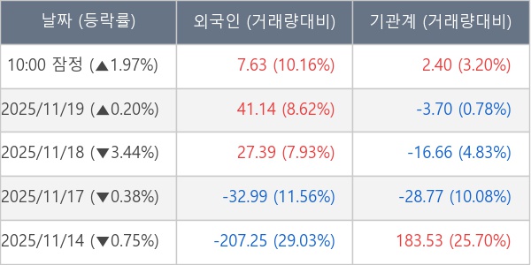 ※ 사모펀드 등 일부 기관의 순매매량은 표시되지 않음