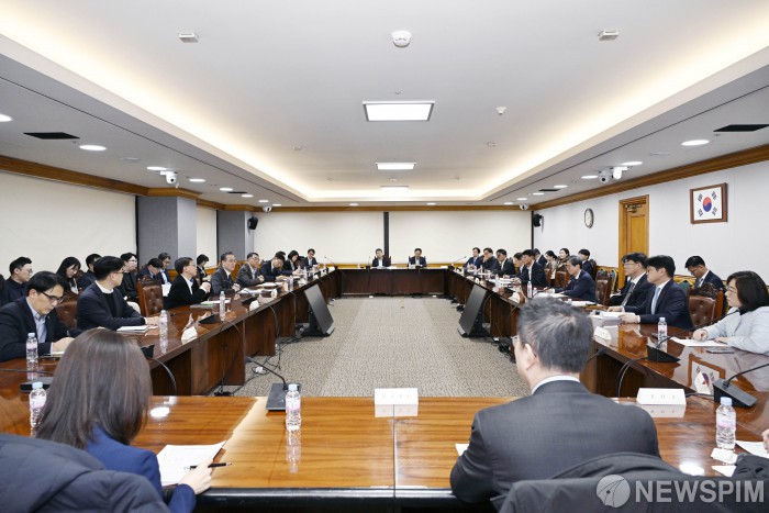 [서울=뉴스핌] 이형일 기획재정부 제1차관이 21일 서울 중구 은행회관에서 열린 역외 원화 결제 시스템 구축 전담반 출범 회의를 주재하고 있다. [사진=기획재정부] 2025.11.21 photo@newspim.com