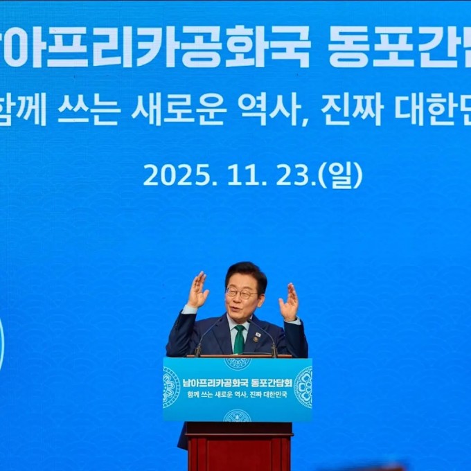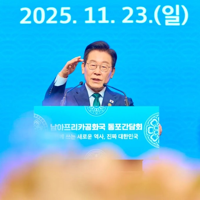 [서울=뉴스핌] 박찬제 기자 = 이재명 대통령이 23일(현지시간) 남아프리카공화국에서 현지 동포들을 만나 "재외국민이 소외되지 않도록 해야한다"고 강조했다.