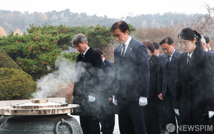 [서울=뉴스핌] 최지환 기자 = 신임 대표로 선출된 조국 조국혁신당 대표가 24일 오전 서울 동작구 국립서울현충원을 찾아 참배하고 있다. 2025.11.24 choipix16@newspim.com