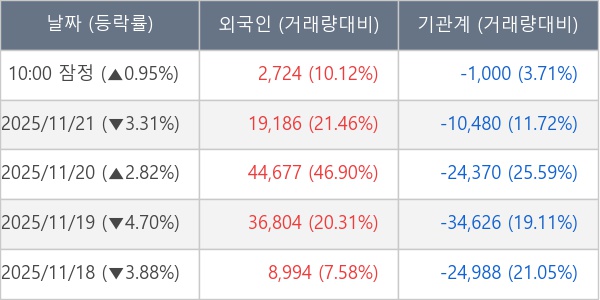 ※ 사모펀드 등 일부 기관의 순매매량은 표시되지 않음