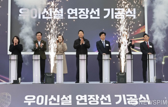 [서울=뉴스핌] 양윤모 기자 = 오세훈 서울시장이 24일 오전 서울 도봉구 방학동 방학사계광장 여름마당에서 개최된 '우이신설 연장선 기공식'에 퍼포먼스에 참석 박수를 치고 있다. 우이신설 연장선 사업은 2032년 개통을 목표로 솔밭공원역에서 1호선 방학역까지 총 3.93km, 3개 정거장 신설을 목표로 총사업비 4,690억 원이 투입되는 도봉구 방학·쌍문 지역의 교통 편의 증진과 지역 발전을 위한 대형 교통망 사업으로 시공사는 ‘HL디앤아이한라 컨소시엄’이다. 행사에는 오세훈 서울시장,최호정 서울시의회 의장,오언석 도봉구청장,오기형 더불어민주당 국회의원 등이 참석했다. 2025.11.24 yym58@newspim.com