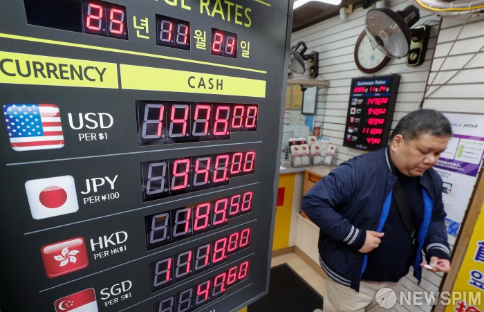 [서울=뉴스핌] 류기찬 기자 = 달러/원 환율이 1470원을 돌파한 24일 오후 서울 중구 명동 환전소에 달러/원 환전 시세가 표시되고 있다. 2025.11.24 ryuchan0925@newspim.com