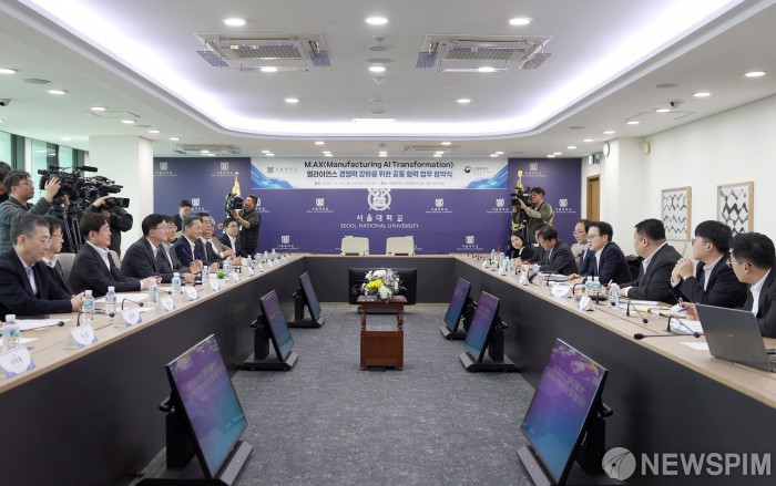 [서울=뉴스핌] 김정관 산업통상부 장관이 24일 서울 관악구 서울대학교에서 열린 산업부-서울대 간 M.AX 얼라이언스 협력을 위한 MOU 체결식에 참석해 발언하고 있다. [사진=산업통상부] 2025.11.24 photo@newspim.com