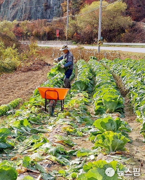 [봉화=뉴스핌] 남효선 기자 = 김장배추 출하하는 경북 봉화군 소천면 서천마을.2025.11.24 nulcheon@newspim.com