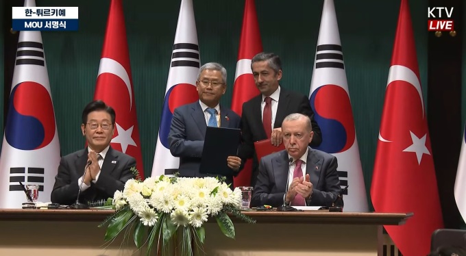 먼저 이 대통령 취임 후 첫 정상회담을 계기로 ▲원자력 협력 MOU(한국전력·튀르키예전력공사) ▲보훈 협력 MOU(한국 국가보훈부·튀르키예 가족사회부) ▲도로 인프라 협력 MOU(한국도로공사·한국해외인프라도시개발지원공사(KIND)·튀르키예 도로청) 3건의 MOU를 맺었다.