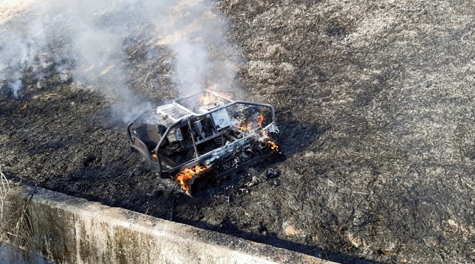 | 24일 오후 2시35분쯤 영천시 화산면 삼부리의 한 뚝방에서 제초작업 중이던 무인제초기에서 불이 났다.[사진=경북소방본부] 2025.11.25 nulcheon@newspim.com |