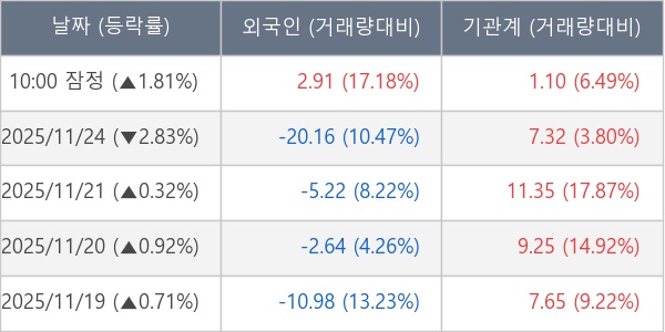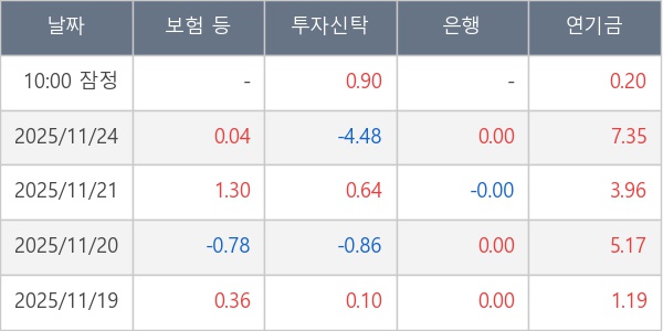 ※ 사모펀드 등 일부 기관의 순매매량은 표시되지 않음