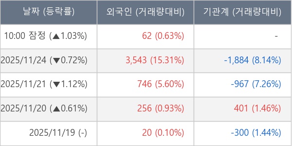 [표] 외국인ㆍ기관 순매매량 (단위 주)