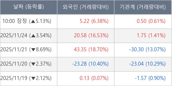 ※ 사모펀드 등 일부 기관의 순매매량은 표시되지 않음
