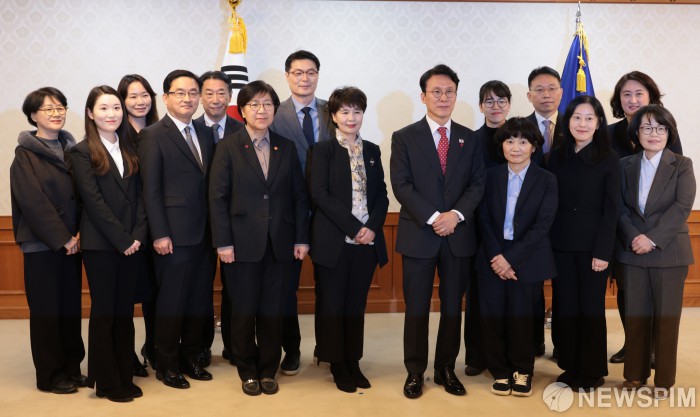 [서울=뉴스핌] 이길동 기자 = 김민석 국무총리가 25일 서울 종로구 정부서울청사에서 아동정책조정위원회 위원들에게 위촉장 수여 후 기념촬영을 하고 있다. 2025.11.25 gdlee@newspim.com