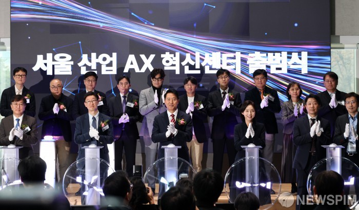 [서울=뉴스핌] 최지환 기자 = 오세훈 서울시장이 25일 오후 서울 서초구 서울 AI허브 메인센터에서 열린 서울산업AX혁신센터 출범식에서 최호정 서울시의회 의장을 비롯한 참석자들과 세레머니를 하고 있다. 2025.11.25 choipix16@newspim.com