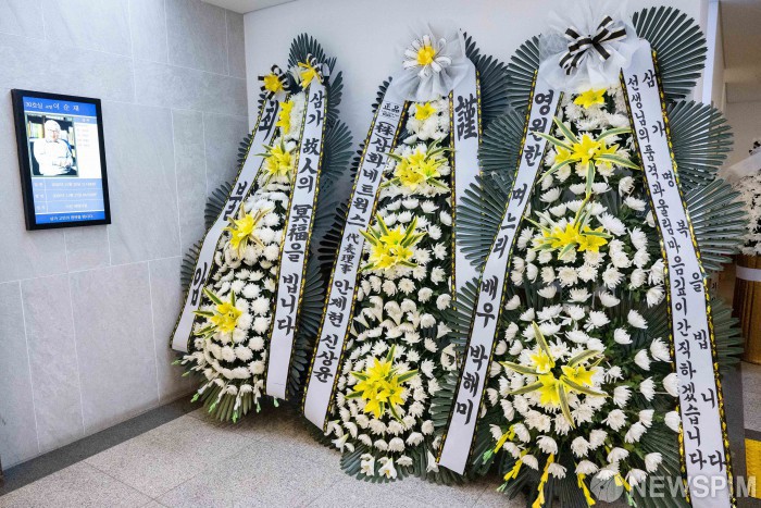 [서울=뉴스핌] 사진공동취재단 = 25일 서울 송파구 서울아산병원 장례식장에 마련된 배우 고(故) 이순재의 빈소에 동료 배우 등이 보낸 근조화환이 놓여 있다. 서울대학교 철학과를 졸업한 故 이순재는 국내 최고령 현역 배우로 70년 가까이 다양한 연극과 드라마, 영화, 예능을 넘나들며 활약했다. 2025.11.25 photo@newspim.com