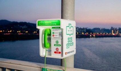 | 한강 다리 위에 SOS생명의전화가 설치돼 있다. [사진=생명보험사회공헌재단] |