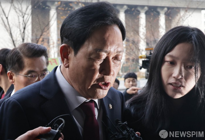 | [서울=뉴스핌] 양윤모 기자 = 김선교 국민의힘 의원이 26일 오전 김건희 여사 일가의 '양평 공흥지구 개발 특혜 의혹'의 피의자 신분으로 서울 종로구 KT광화문빌딩 웨스트에 마련된 김건희 특검팀(특별검사 민중기)에 출석하고 있다. 김선교 의원은 김 여사의 모친 최은순씨와 오빠 김진우씨가 연루된 아파트 개발부담금 회피로 '특정범죄 가중처벌법상 국고손실 혐의'를 받고 있다. 2025.11.26 yym58@newspim.com |