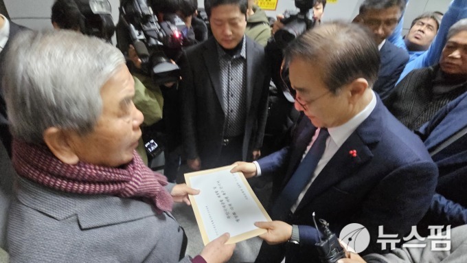 | [무안=뉴스핌] 조은정 기자 = 26일 무안국제공항활성화추진위가 김윤덕 국토부 장관에게 '무안국제공항재개항 및 정상화 대책 마련 촉구 건의서를 전달하고 있다. 2025.11.26 ej7648@newspim.com |