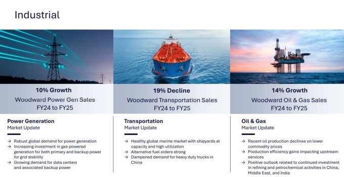 우드워드의 2025회계연도 산업 부문 시장별 성과 [자료 = 업체 홈페이지]
