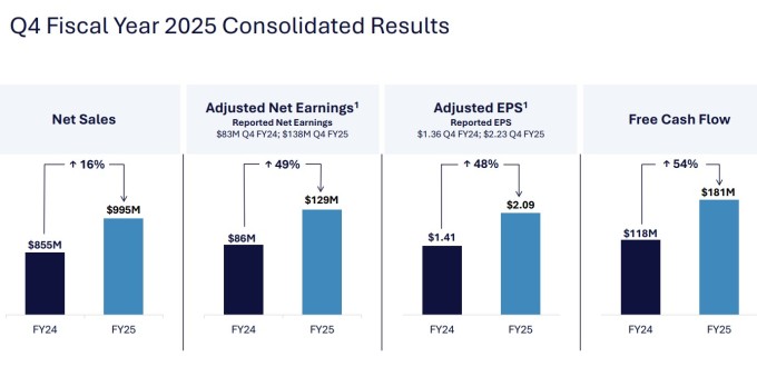 우드워드가 투자자들을 환호하게 만든 것은 깜짝 실적 때문이다. 2025회계연도 4분기 조정 주당순이익(EPS)은 2.09달러로 전년 동기 대비 48% 급증하며 월가 컨센서스인 1.86달러를 12.4%나 상회했다. 매출은 9억9530만 달러로 전년 동기 대비 16.5% 증가해 시장 예상치 9억3389만 달러를 훌쩍 뛰어넘었다.