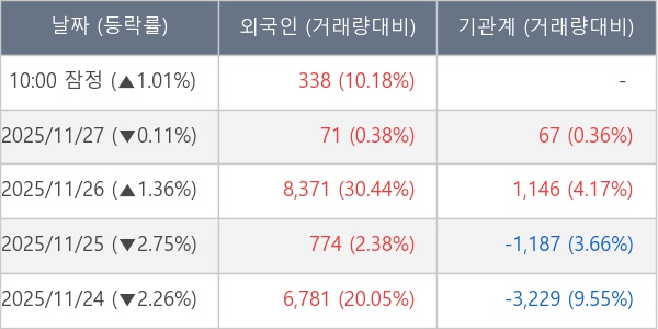 [표] 외국인ㆍ기관 순매매량 (단위 주)