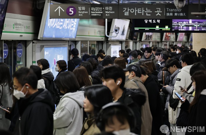 [서울=뉴스핌] 양윤모 기자 =1일 오전 서울 지하철 1∼8호선을 운영하는 서울교통공사의 노동조합이 임금·단체협상 결렬에 따른 대응으로 '준법운행'에 들어간 가운데, 동대문역사문화공원역에서 시민들이 출근을 위해 지하철을 기다리고 있다. 2025.12.01 yym58@newspim.com