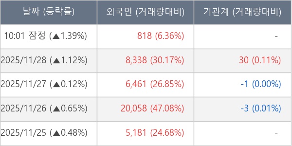 [표] 외국인ㆍ기관 순매매량 (단위 주)