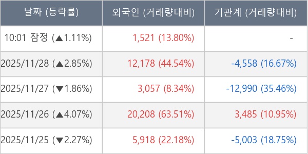 [표] 외국인ㆍ기관 순매매량 (단위 주)