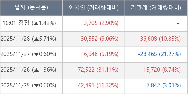 [표] 외국인ㆍ기관 순매매량 (단위 주)