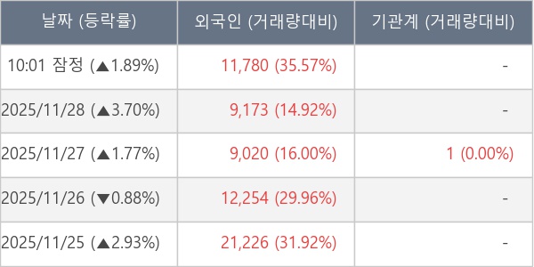 [표] 외국인ㆍ기관 순매매량 (단위 주)