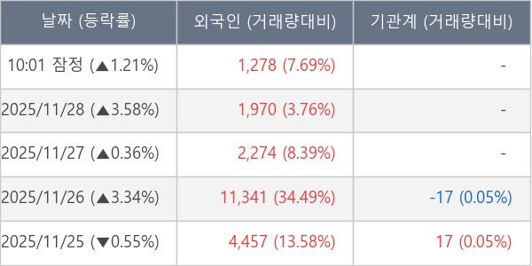 [표] 외국인ㆍ기관 순매매량 (단위 주)
